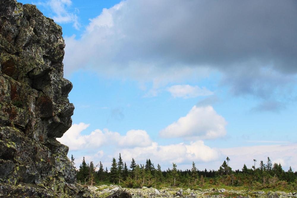 Если взглянуть с вершины горы Поперечная в сторону горы Евлахта, можно увидеть необъятные просторы каменистого плато. В утренние часы эти залитые солнцем поляны словно приглашают совершить приятную прогулку к виднеющимся неподалеку скальным останцам. Но чтобы попасть туда, придется преодолеть довольно крутой спуск по огромным курумникам склона Поперечной.